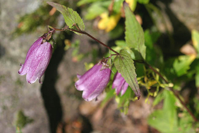 やまほたるぶくろ 秋の山野草2019.03.102019.03.11ヤマホタルブクロ やまほたるぶくろ分類 キキョウ科ホタルブクロ属季節 秋種類 花撮影日 2004/09場所 志賀高原やまほたるぶくろ(山蛍袋)平地で咲いているホタルブクロにも色の濃いものがあるので長く同じものだと思っていた。 ただ同じ時期の山であまり何度も目に付くので調べてみた。 生活圏の違いだけでなく明らかに形に違いががあることが分かった。 ガクの長さが違う。どれも短く蓋のように被さっている。 ただ説明書にあるガク片の間にある裂片については残っていなかった。 もう少したくさん見て確かめてみよう。 山は寒いので温まるために色が濃くなっているのだろうかとちょっと感心した。
