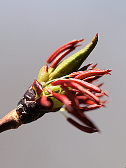花びらは無く、細く下がっているのは雄蕊で赤紅色は葯。